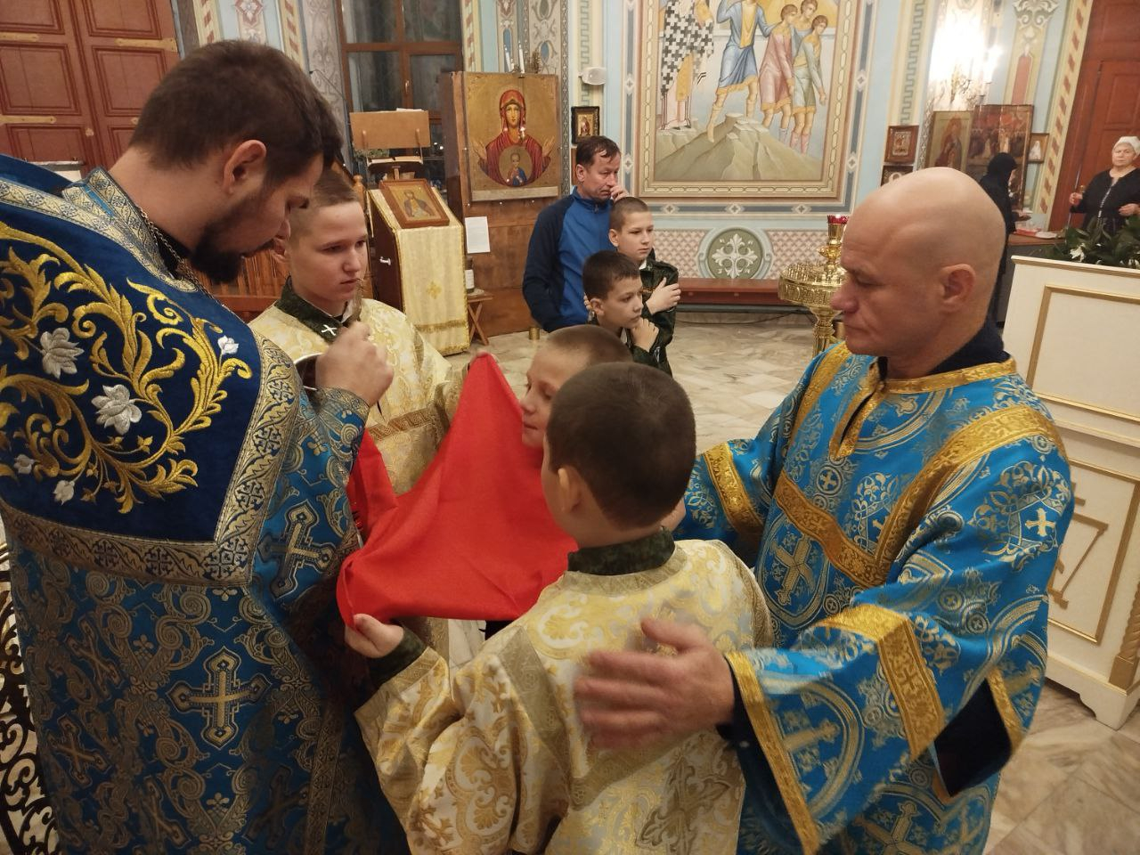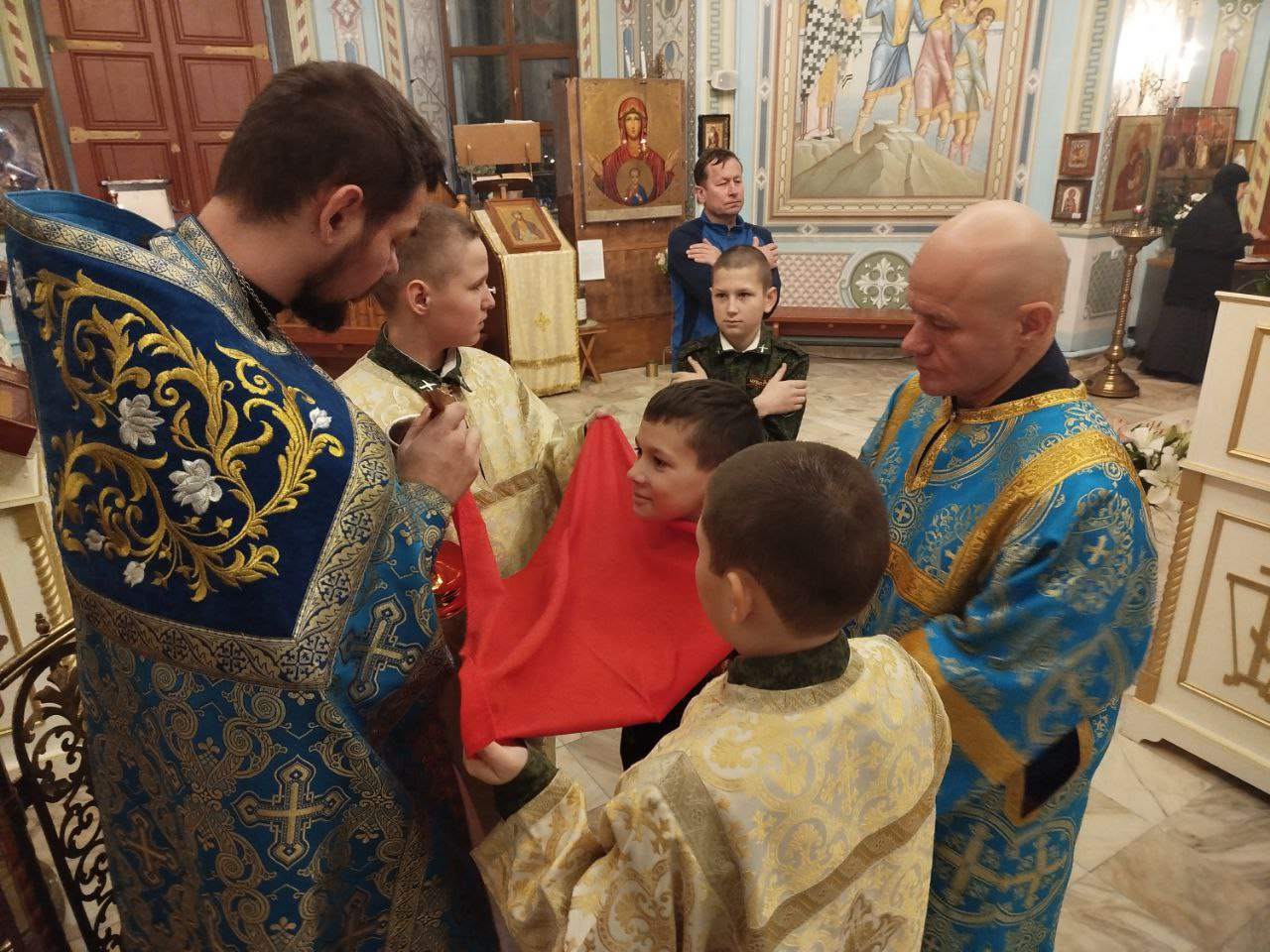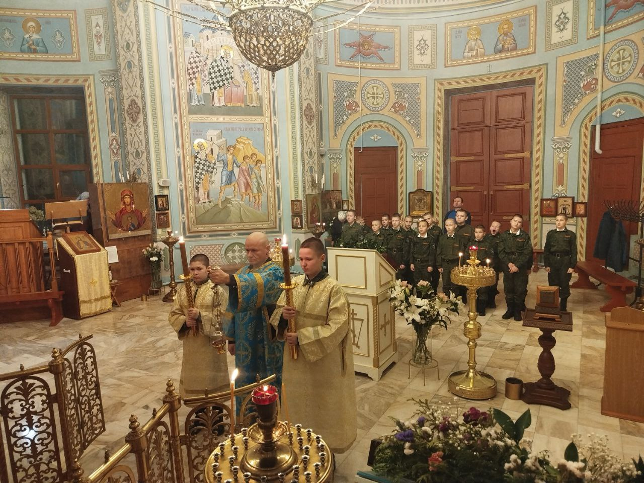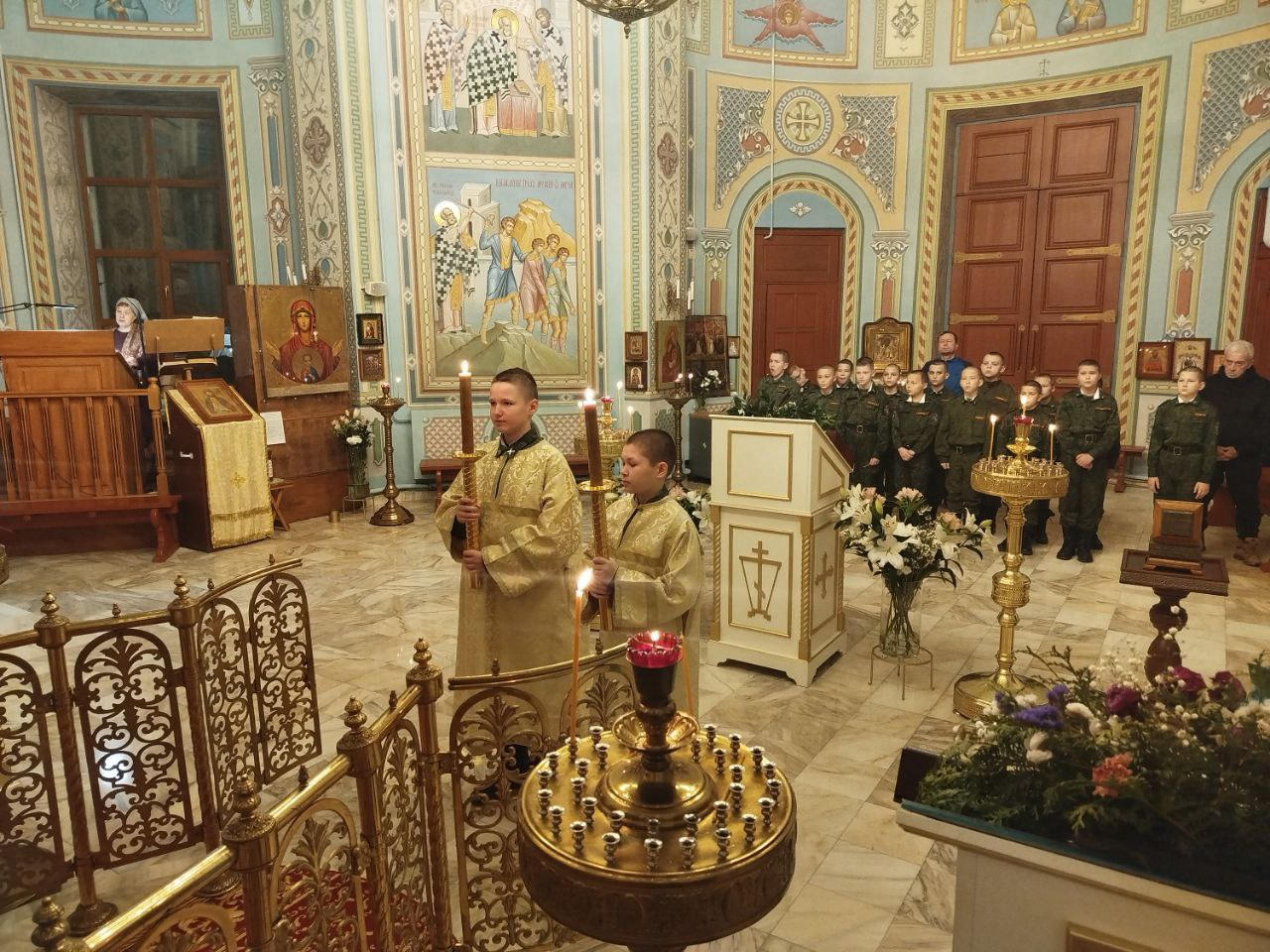 На службе молились кадеты 6 класса Первого Рузского казачьего кадетского корпуса им. Л.М. Доватора во главе с директором корпуса, казачьим полковником Владимиром Валентиновичем Пинте.